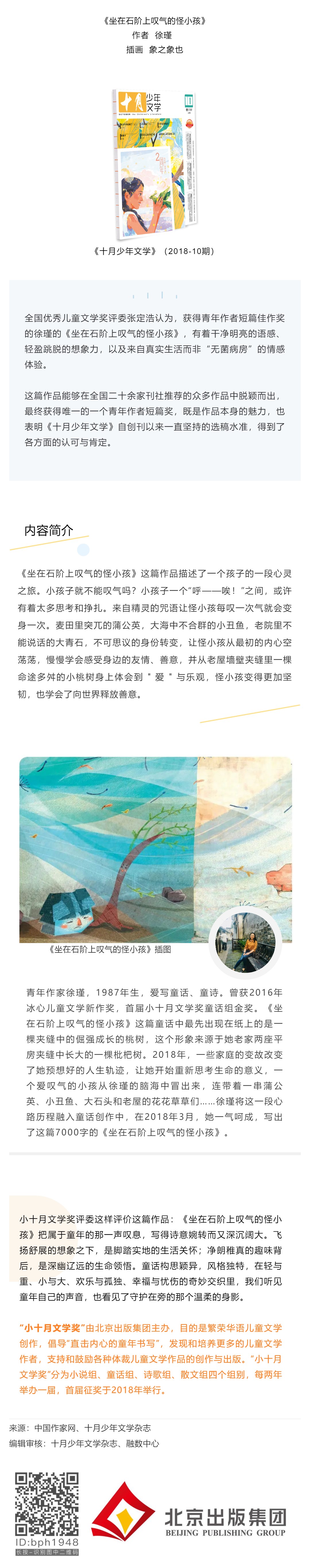 重磅 | 十月少年文学编辑部选送《坐在石阶上叹气的怪小孩》荣获第十一届全国优秀儿童文学奖