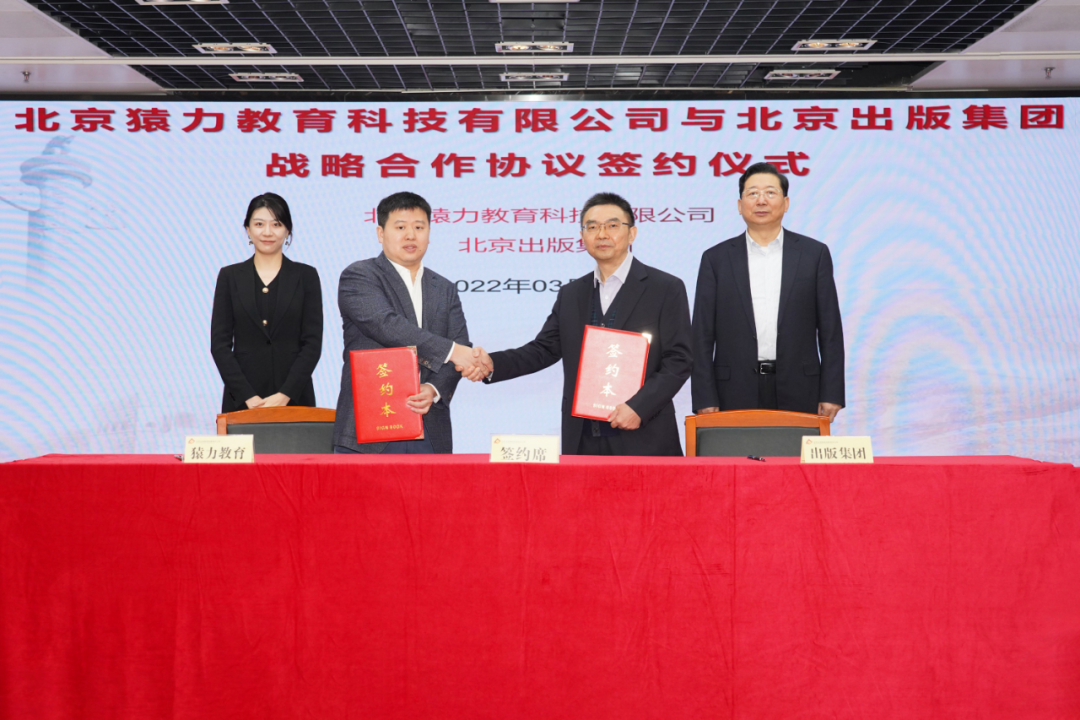 康伟表示,北京出版集团作为市属唯一的大型综合性出版机构,是“全国百佳图书出版单位”和“首都文化企业30强”。集团旗下教育资源丰富,经过多年深耕,积累了丰厚的优质教育品牌资源、作者资源和内容资源,产品覆盖0~18岁全年龄段、K12教育全产业链;涉及少儿教育、少儿科普、育儿教育、研学培训等产业板块。近年来,集团着力推进出版产业融合发展与转型升级,精心打造了“北教辅学网”“京版云App”“育朵App”等知识服务平台,推出了众多的优质动画片、有声书、玩教具等衍生文创产品,以及“小十月研学”“京版童尚少儿艺术培训”等多业态优质文化服务。希望通过此次战略合作,有效促进文化出版资源与高新技术的融合发展、进一步激发双方内容资源有效利用和品牌活力。相信在长期有效的合作机制引领下,随着双方合作的深入和细化,猿力教育公司与京版集团在推进产业融合、服务地方经济发展方面必将取得丰硕的成果。