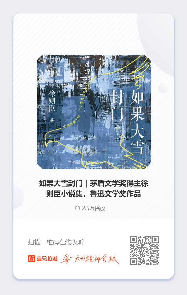 点击下方音频收听徐则臣朗读《如果大雪封门》片段