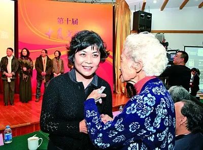 《十月》创刊35周年时,中国作协主席铁凝与《十月》首任主编苏予交谈。