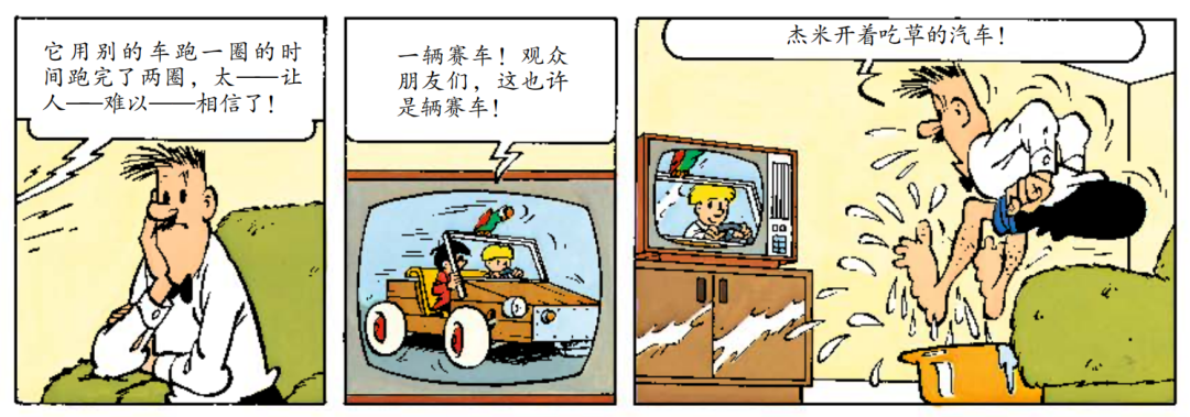 杰米开着“吃草的汽车”赢得了欧洲大奖赛第一名。