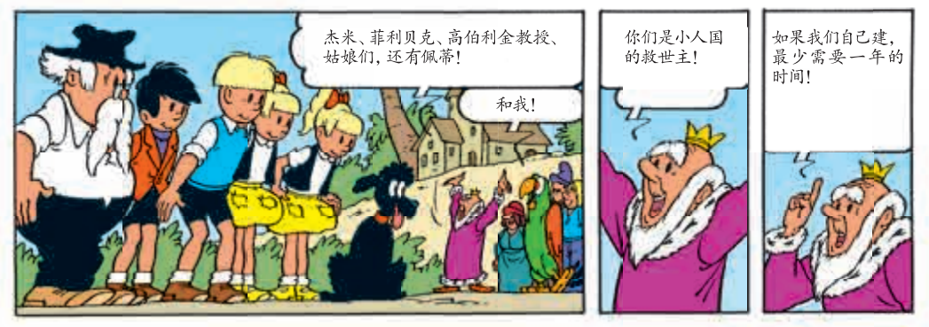 如果没有杰米他们的帮助,小人国的居民要一年才能建好这样的工程。